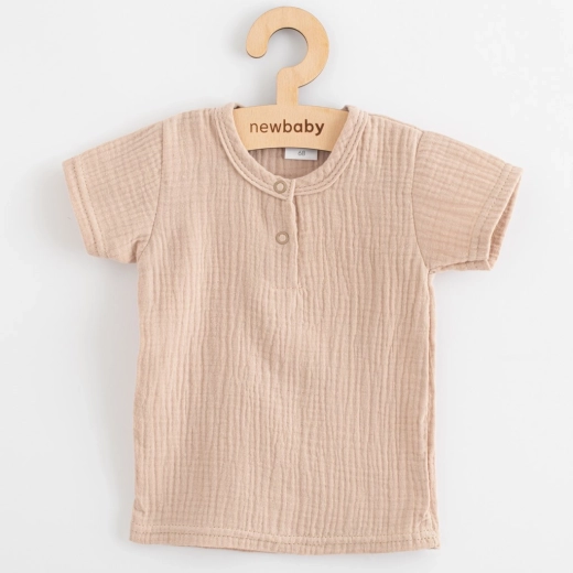 Stylowy i praktyczny 2‑częściowy zestaw New Baby z delikatnego muślinu: koszulka z krótkim rękawem i spodnie z wygodną gumką. Z wysokiej jakości, oddychającej bawełny na wiosenne i letnie dni. Wygoda, oddychalność, łatwe zapinanie na napy oraz nowoczesny krój do codziennego noszenia.