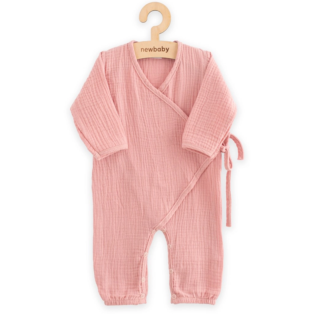 Lekki i przewiewny muślinowy rampers NEW BABY to idealny wybór dla codziennego komfortu maluszka. Kopertowy krój z bocznym wiązaniem, wewnętrzną napką oraz napkami między nóżkami ułatwia ubieranie i przewijanie. Delikatne gumki przy nogawkach trzymają kształt, a jednocześnie nie uciskają.