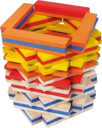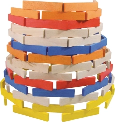Zestaw zawiera 100 solidnych, gładkich płytek w naturalnych i intensywnych kolorach – idealnych do wież, domków i oryginalnych konstrukcji.