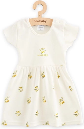 Urocza niemowlęca sukienka New Baby z nadrukiem oliwek uszyta z miękkiej, 100% organicznej bawełny. Lekka, przewiewna i przyjemna dla skóry, z zapięciem na napę dla łatwego ubierania. Certyfikat OEKO-TEX STANDARD 100 gwarantuje bezpieczeństwo dla wrażliwej skóry dziecka.
