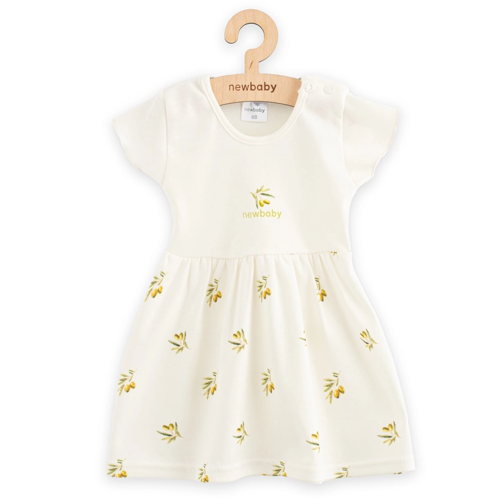 Stylowa sukienka dla małych elegantek z kolekcji New Baby Oliwki zachwyca delikatnie marszczoną spódniczką i radosnym nadrukiem oliwek. Dzięki naturalnemu materiałowi sukienka jest miękka, przewiewna i delikatna dla skóry, idealna na co dzień.