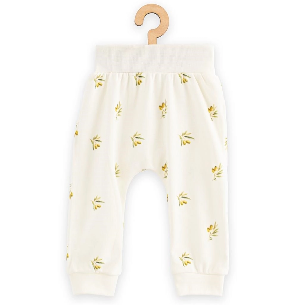 Delikatne i wygodne dziecięce spodnie z organicznej bawełny NEW BABY z całopowierzchniowym nadrukiem oliwek są idealne do codziennego noszenia. Szerszy ściągacz w pasie i przy nogawkach zapewnia, że spodnie dobrze trzymają się i nie uciskają. Dzięki miękkiemu, oddychającemu i wysokiej jakości materiałowi maluszek będzie czuł się świetnie przez cały dzień.