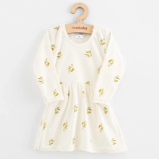 Stylowa i wygodna niemowlęca sukienka New Baby Olivy doskonale sprawdzi się na co dzień i na wyjątkowe okazje. Dzięki miękkiej organicznej (bio) bawełnie sukienka jest przyjemna w dotyku, świetnie oddycha i nie podrażnia skóry. Delikatnie marszczona spódniczka oraz figlarny nadruk w oliwki nadają modelowi subtelny wygląd.