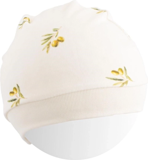 Design z subtelnym nadrukiem oliwek oraz szerszy elastyczny ściągacz zapewniają, że czapeczka dobrze leży i nie uciska główki. Idealna do codziennego noszenia, do wózka i po kąpieli.