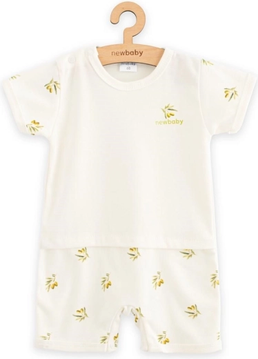 Lekki i wygodny niemowlęcy rampers New Baby Oliwki z 100% organicznej bawełny z krótkim rękawem i kopertowym krojem. Całopowierzchniowy nadruk w oliwki, łatwe zapinanie na napy między nóżkami oraz z boku na sznureczki, miękkie gumki w nogawkach nie uciskają. Certyfikat OEKO-TEX STANDARD 100 – bezpieczny także dla wrażliwej skóry.