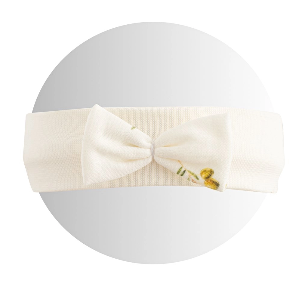 Stylowa opaska dla małych elegantek łączy subtelny design i maksymalny komfort. Wykonana w 100% z organicznej bawełny, łagodnej dla wrażliwej skóry, odpowiedniej dla alergików i dzieci z atopowym zapaleniem skóry. Ponadczasowy wzór oliwek doda stylizacji wyjątkowego charakteru.