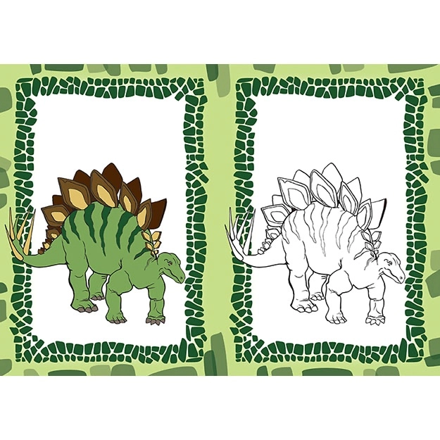 Odkryj świat prehistorycznych stworzeń z praktycznymi kolorowankami w formacie A5. Zeszyt oferuje 9 czarno-białych obrazków do kolorowania oraz 9 kolorowych wzorów dla łatwej inspiracji i rozwijania kreatywności dzieci.