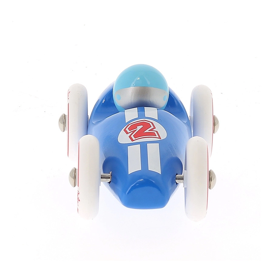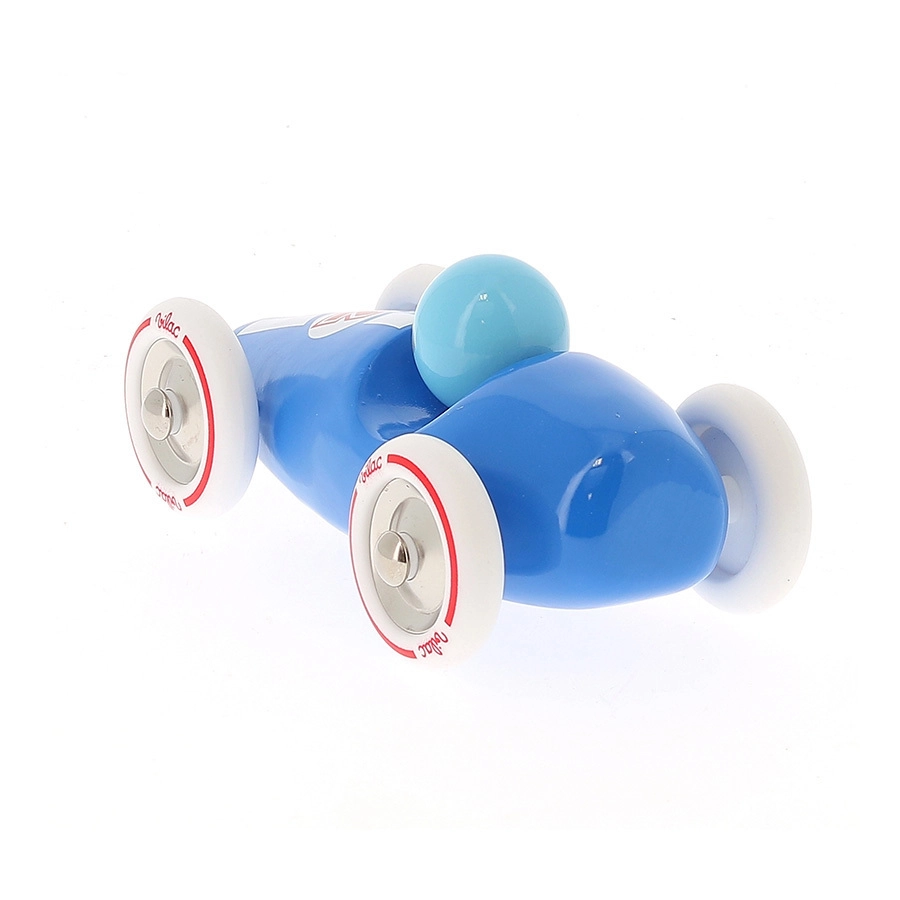 Niebieski samochód wyścigowy Vilac wyróżnia się czystym, retro designem, precyzyjnym wykonaniem i wytrzymałymi materiałami. Lakierowane drewno jest przyjemne w dotyku i łatwe w pielęgnacji, a metalowe elementy i gumowane koła zapewniają gładką i cichą jazdę po różnych powierzchniach. Zabawa autkiem wspiera koordynację ręka–oko, rozwija wyobraźnię i koncentrację.