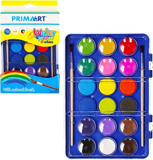 Praktyczny zestaw farb akwarelowych dla małych i dużych artystów. Zawiera 12 intensywnych kolorów i 2 wysokiej jakości pędzle w kompaktowym etui o wymiarach 15 × 24 × 2 cm. Idealny dla dzieci od 3 lat oraz początkujących malarzy.