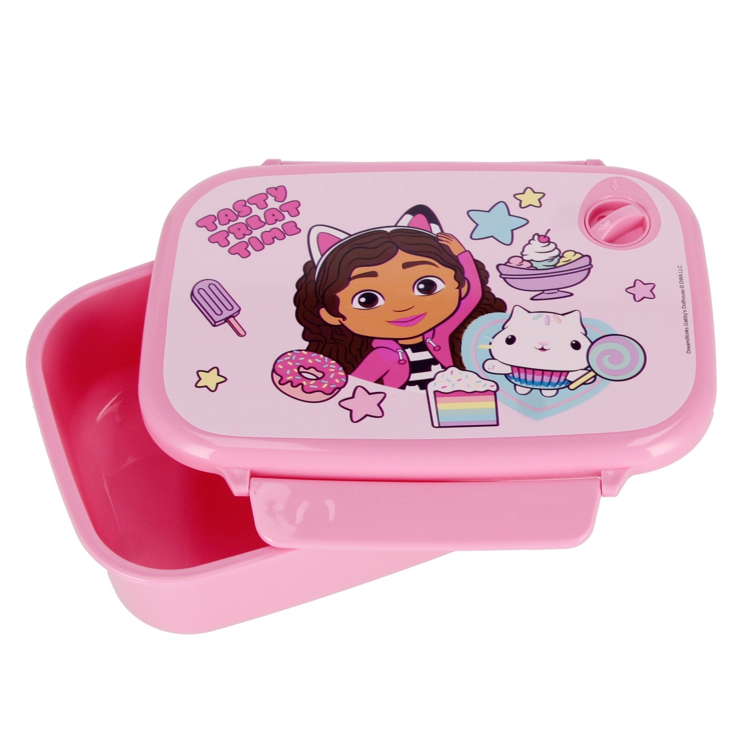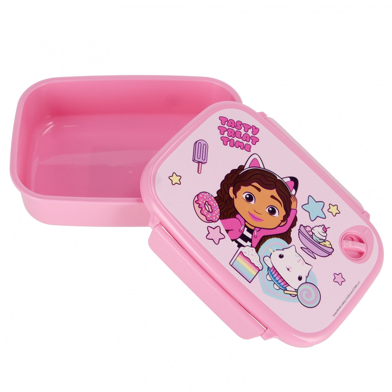 Praktyczny dziecięcy lunchbox z motywem GABBY'S DOLLHOUSE jest idealny na przekąskę do przedszkola i na wycieczki. Kompaktowe wymiary 6 × 18 × 14 cm mieszczą się w plecaczku, wytrzymałe plastikowe wykonanie łatwo się czyści, a bezpieczne zamknięcie utrzymuje jedzenie na miejscu. Odpowiedni dla dzieci od 3 lat.