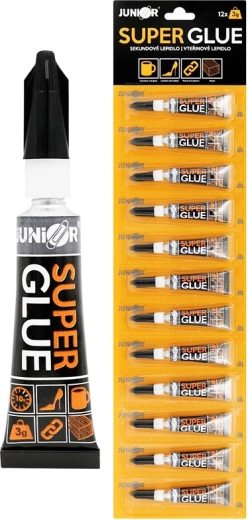 Uniwersalny klej sekundowy o masie 3 g do szybkiego i mocnego łączenia różnych materiałów. Odpowiedni do ceramiki, skóry, gumy, drewna i korka. Sprzedawany pojedynczo, opakowanie dostawcy po 12 szt. Odpowiedni od 3 lat.