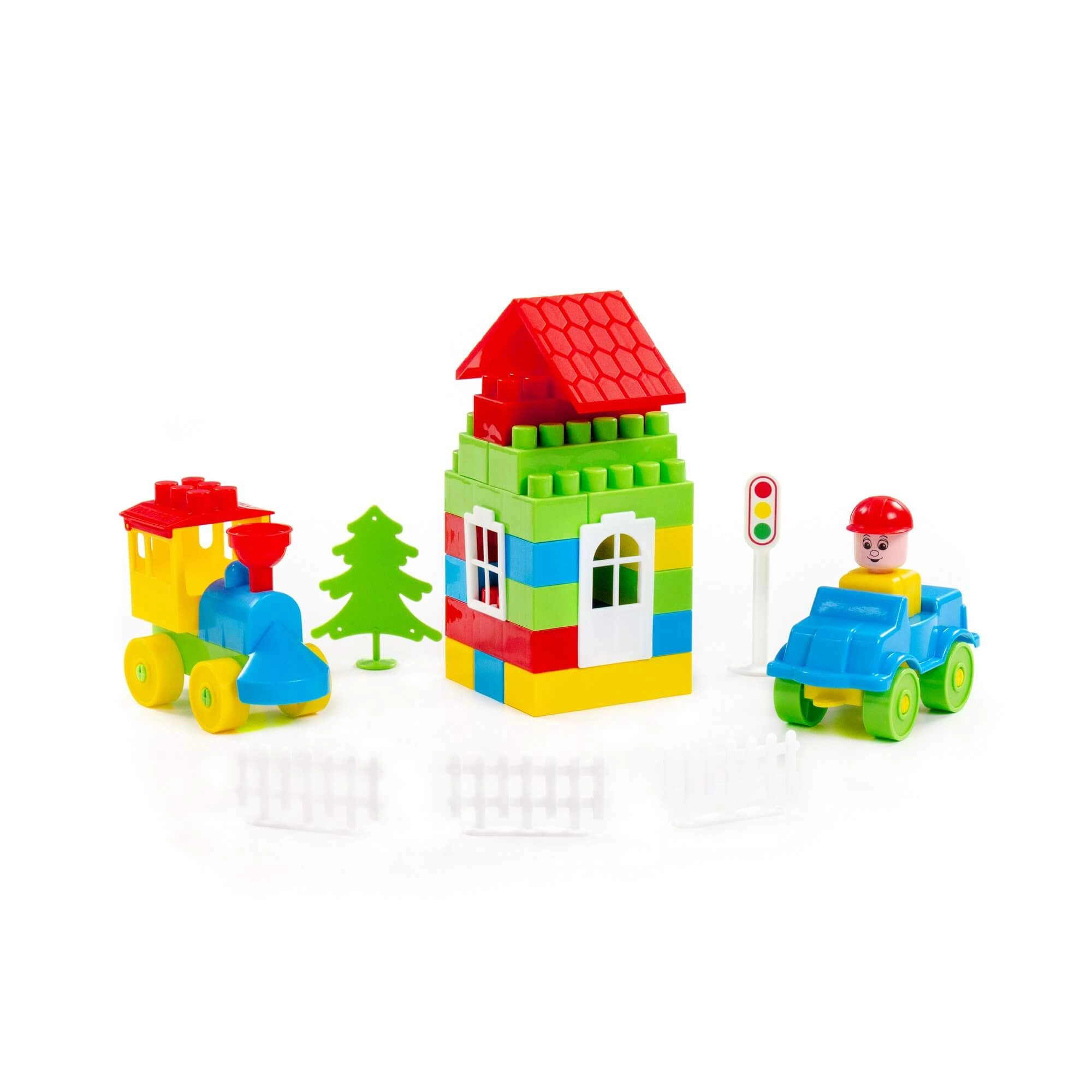 Zestaw rozwija małą motorykę, wyobraźnię przestrzenną oraz kreatywne myślenie. Solidne elementy są zaprojektowane z myślą o małych dłoniach i umożliwiają wielokrotne składanie bez utraty jakości.