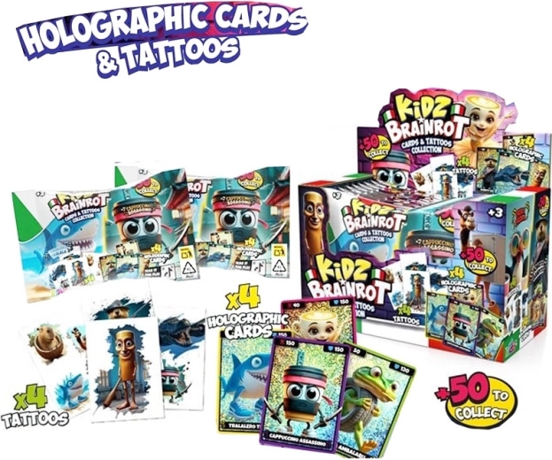 Odkryj zabawny pakiet z motywami Italian Brainrot – w każdym opakowaniu znajdziesz 4 kolekcjonerskie karty i 4 tymczasowe tatuaże w losowym wyborze. Idealny dla fanów trendów i jako oryginalny prezent.