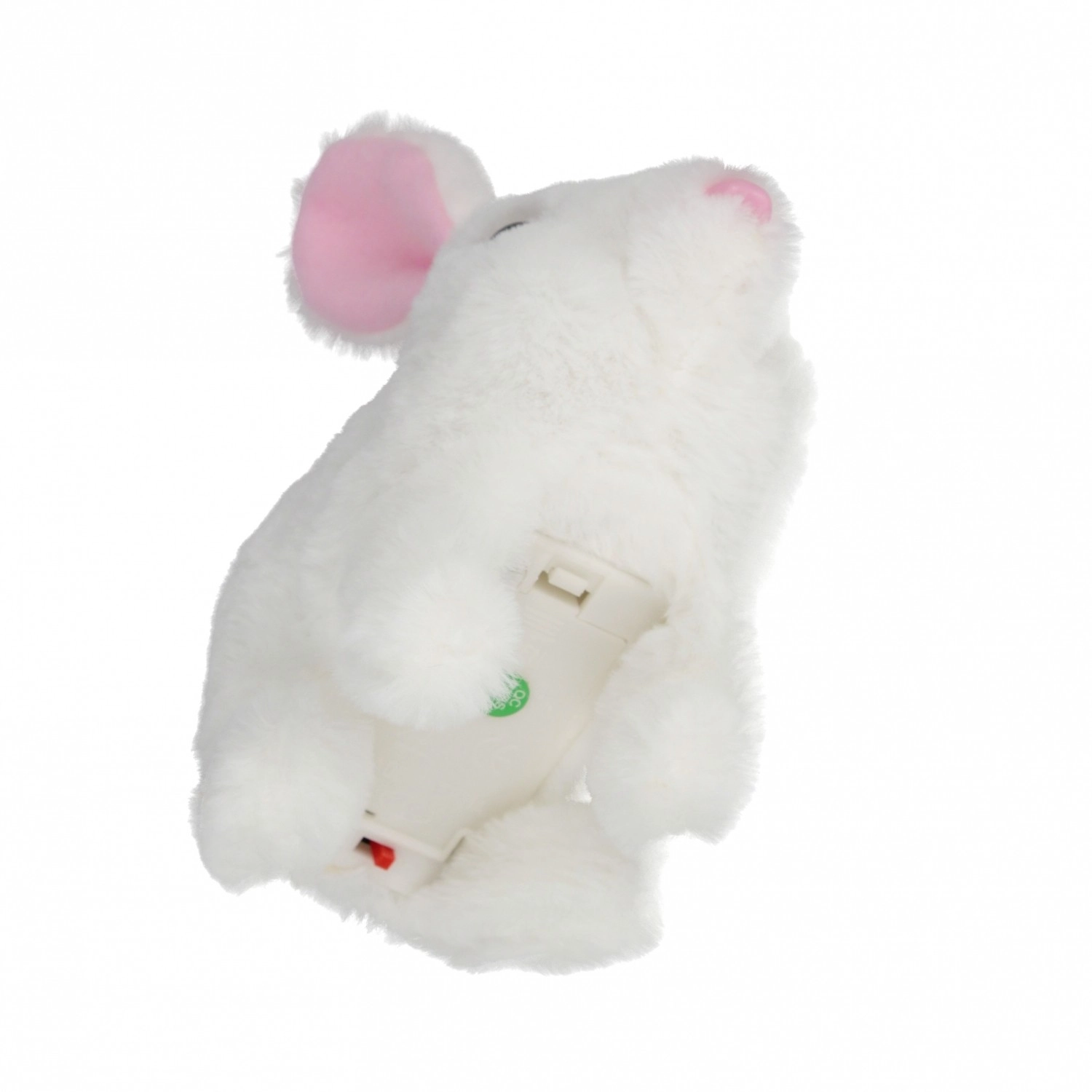 • Funkcje interaktywne: piszczy, porusza noskiem i uroczo podskakuje.
