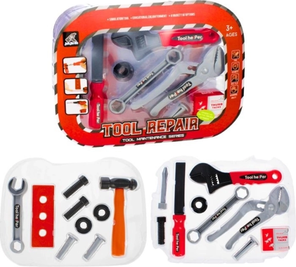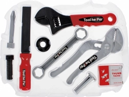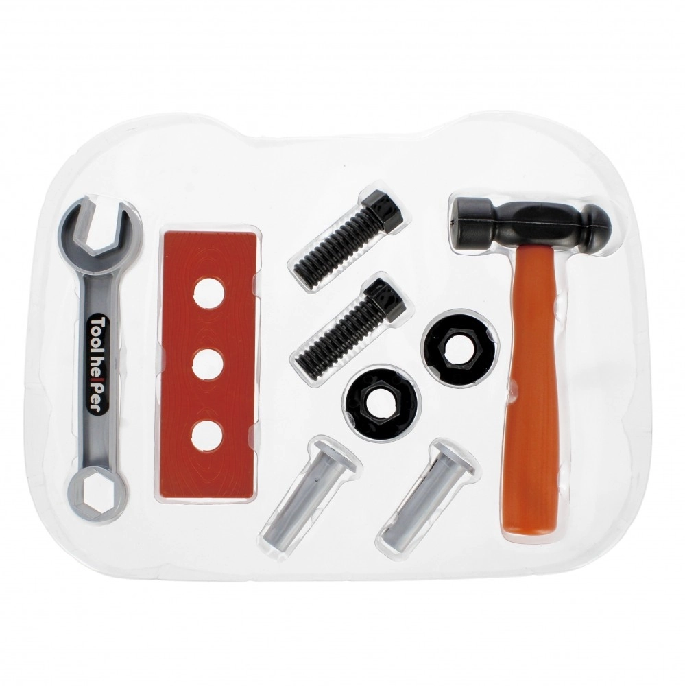 W zestawie znajdują się imitacje narzędzi, takie jak młotek, klucze czy śruby, które swoim wykonaniem zachęcają do samodzielnej zabawy i naśladowania dorosłych. Świetne do domowego warsztaciku, wspólnej zabawy i rozwijania wyobraźni.