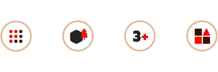 - Wsparcie rozwoju – wyobraźnia, komunikacja, dzielenie się, mała motoryka.