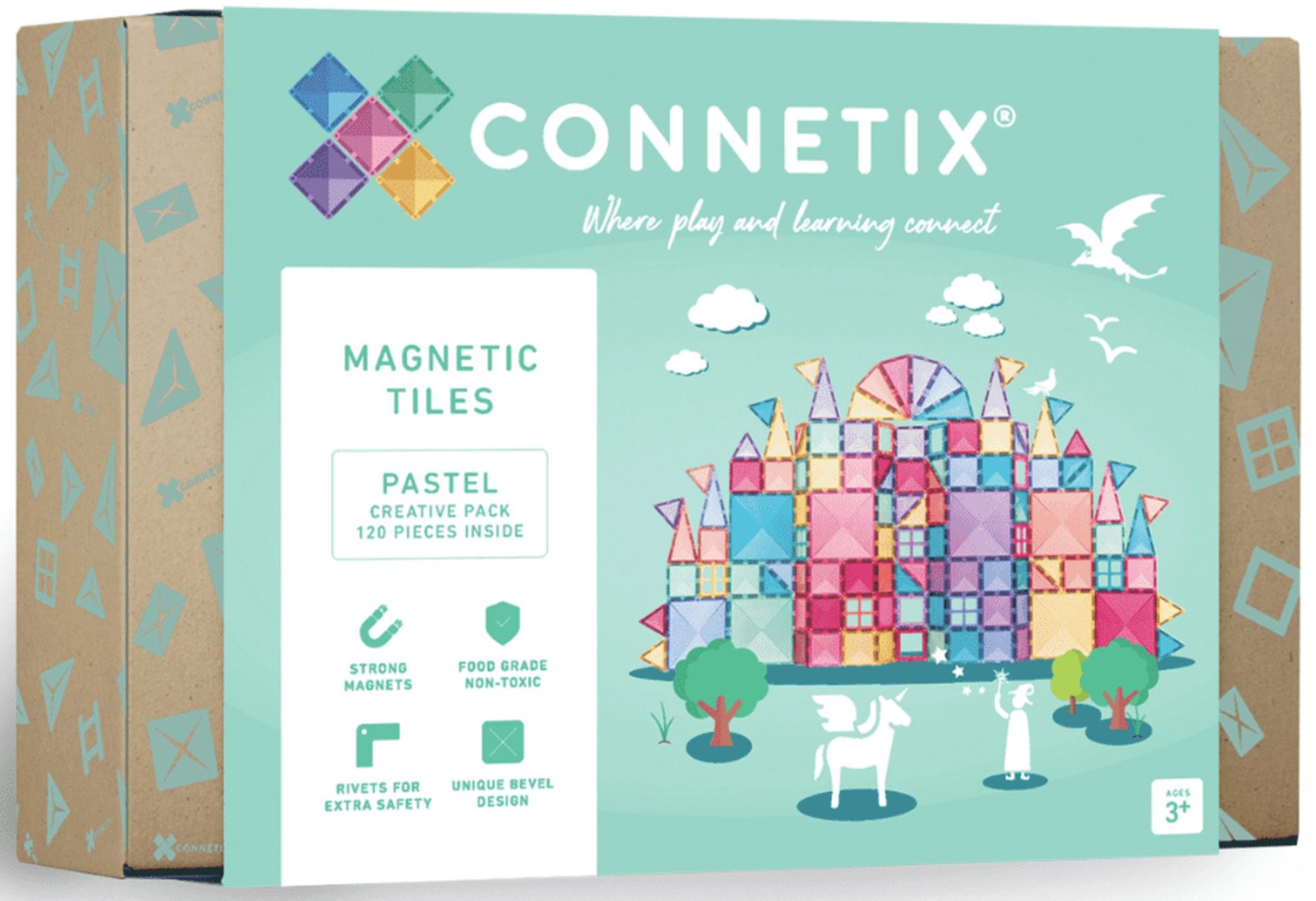 Zestaw CONNETIX Pastel Creative Pack oferuje 120 przezroczystych magnetycznych płytek w delikatnych pastelowych barwach do tworzenia zamków, mostów i futurystycznych wież. Dzięki mocnym magnesom neodymowym elementy przyciągają się z każdej strony, tworząc stabilne konstrukcje, które wspierają umiejętności STEM/STEAM – od fizyki magnetyzmu po geometrię przestrzenną.