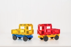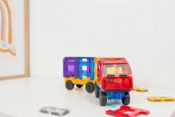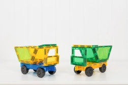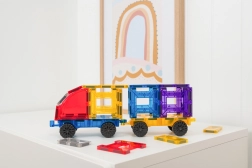 Zestaw CONNETIX Rainbow Car Pack zawiera dwie przezroczyste mobilne bazy w kolorze niebieskim i żółtym z płynnie obracającymi się kołami. Łatwo połączysz je z innymi magnetycznymi elementami CONNETIX i w kilka chwil stworzysz własne auta, ciężarówki czy pociągi. Silne magnesy neodymowe stabilnie trzymają ze wszystkich stron, a charakterystyczne „kliknięcie” przy łączeniu elementów dodaje radości z budowania.