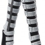 Odkryj wyjątkowy design edycji Reel Drama: Clawdeen Wolf lśni w monochromatycznej stylizacji z kontrastującymi fioletowymi akcentami. Szczegółowo wykonany strój z miękką „puszystą” kurteczką, rozkloszowaną spódnicą i platformowymi sandałami podkreśla jej drapieżny charakter. Dzięki przegubom artykułowanym z łatwością ustawisz ją w ikonicznych pozach do witryny i zdjęć.