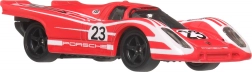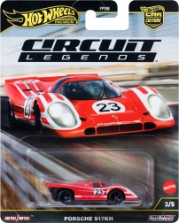 Metalowy kolekcjonerski model HOT WHEELS Premium z serii Circuit Legends wiernie odwzorowuje kultowe PORSCHE 917KH w intensywnej czerwieni z białymi pasami. Precyzyjne wykonanie w skali 1:64, gumowe opony Real Riders oraz metalowe nadwozie gwarantują realistyczny wygląd, świetną płynność jazdy i długą trwałość – idealne dla kolekcjonerów i do zabawy.