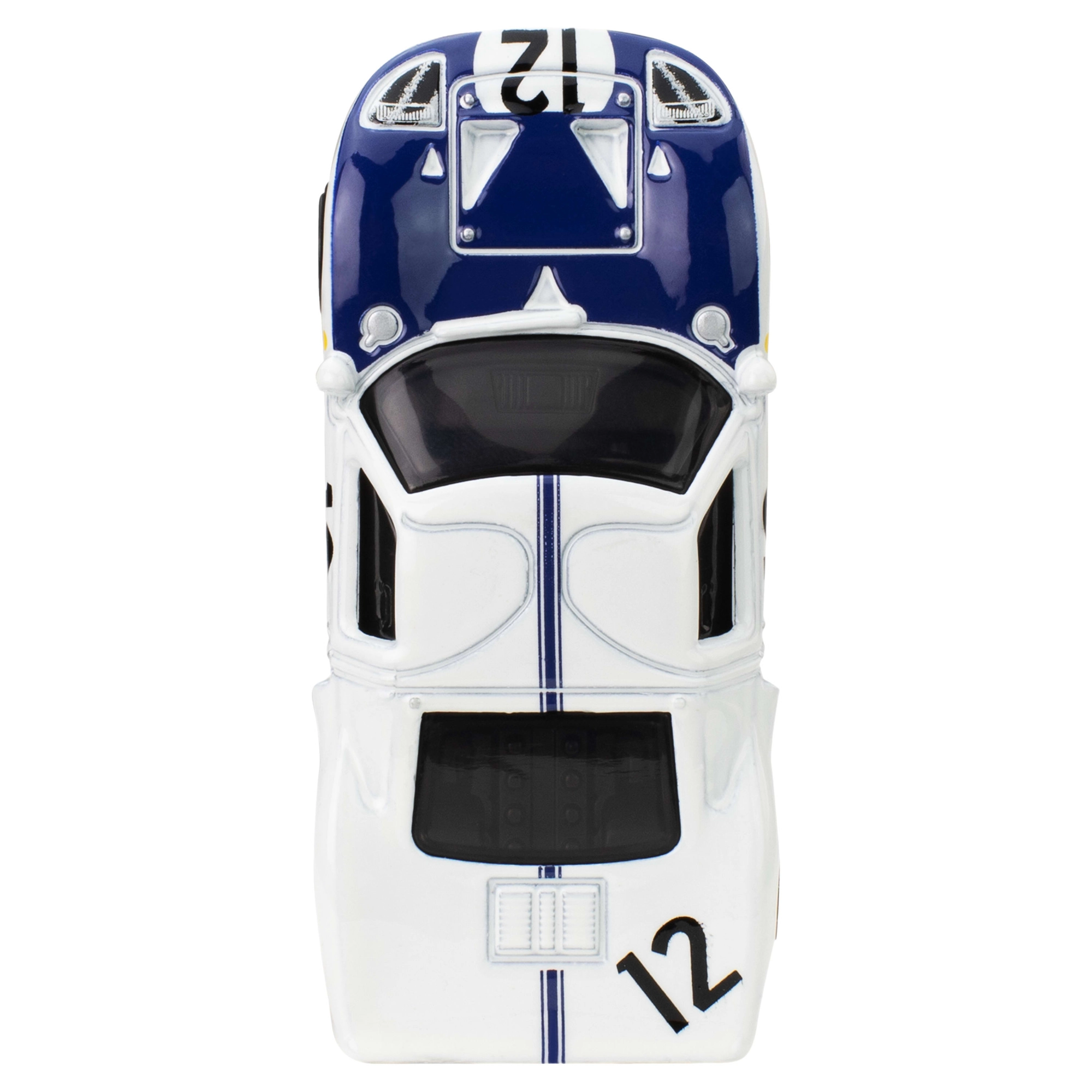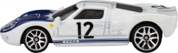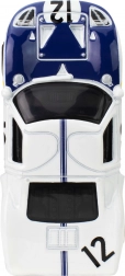 Białe nadwozie z niebieskimi pasami, numerem 12 i realistycznymi detalami podkreśla ikoniczny wygląd FORD GT40.
