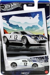 Ikoniczny model FORD GT40 z serii Hot Wheels Silver Series – National Icons w skali 1:64. Metalowe nadwozie, realistyczne detale, ruchome koła oraz białe malowanie z niebieskimi pasami i numerem 12 ucieszą dzieci i kolekcjonerów.