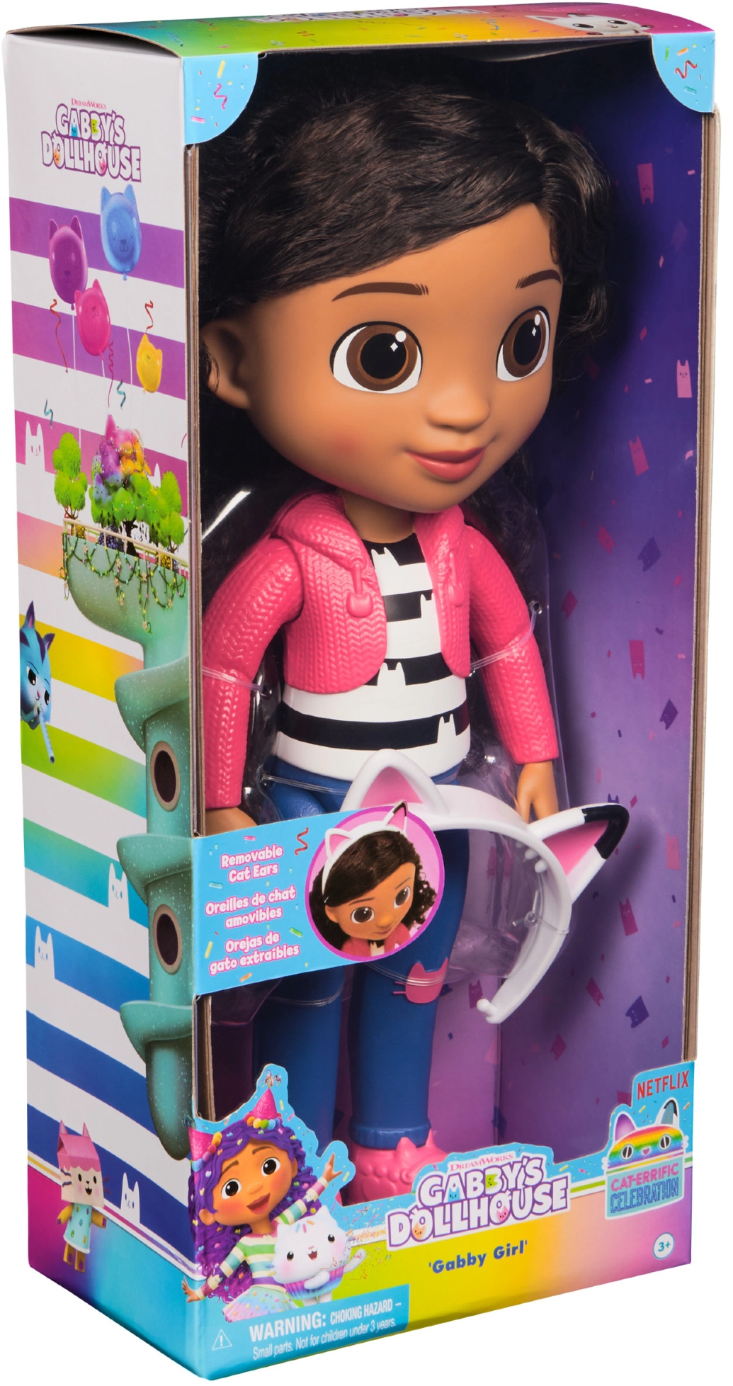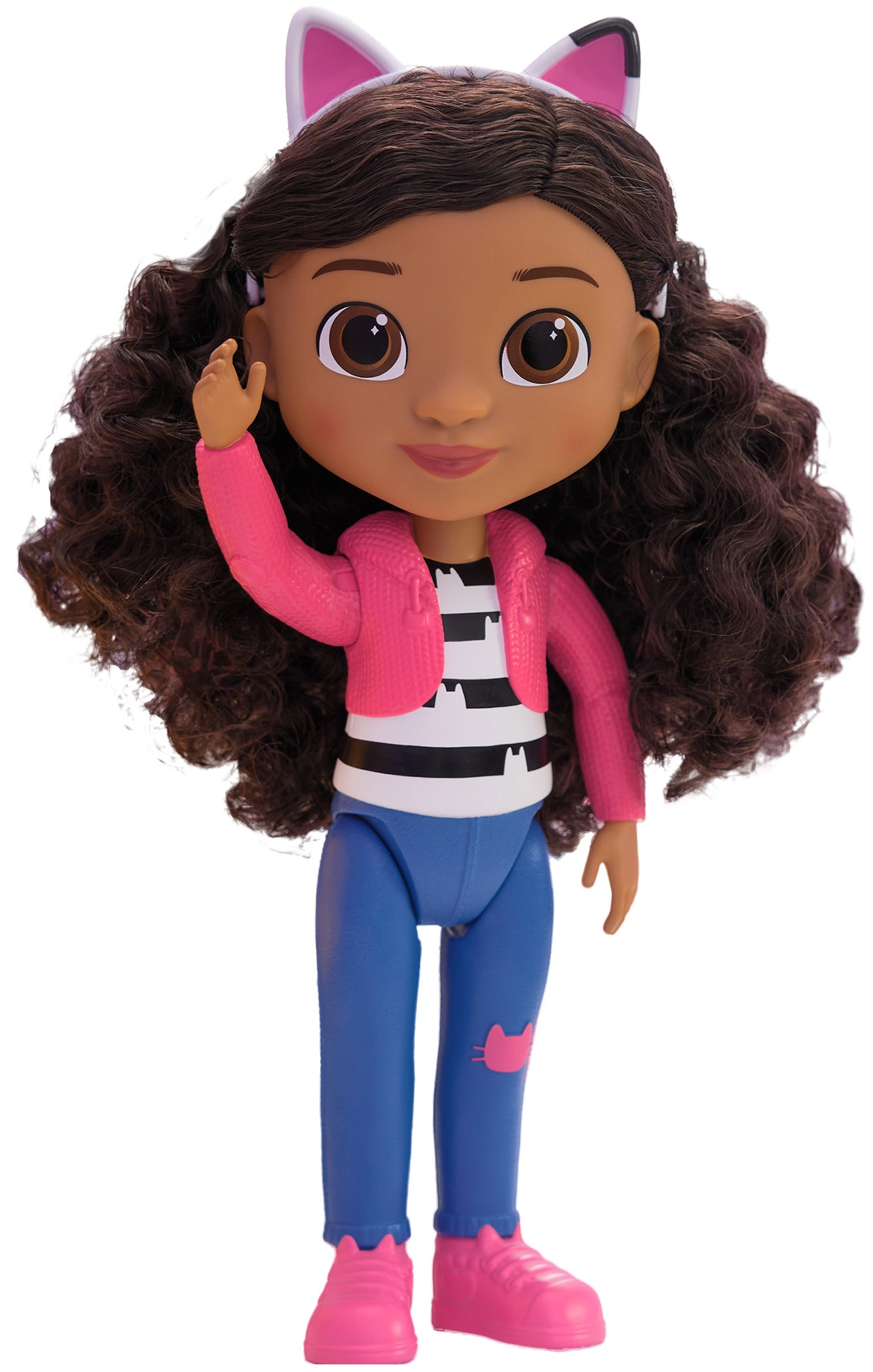 Odkryj świat fantazji z lalką Gabi inspirowaną serialem GABBY'S DOLLHOUSE. Dzięki realistycznym detalom, takim jak duże wyraziste oczy, długie kręcone włosy i ikoniczna kocia opaska, jest idealna do kreatywnych historii i codziennego przytulania.