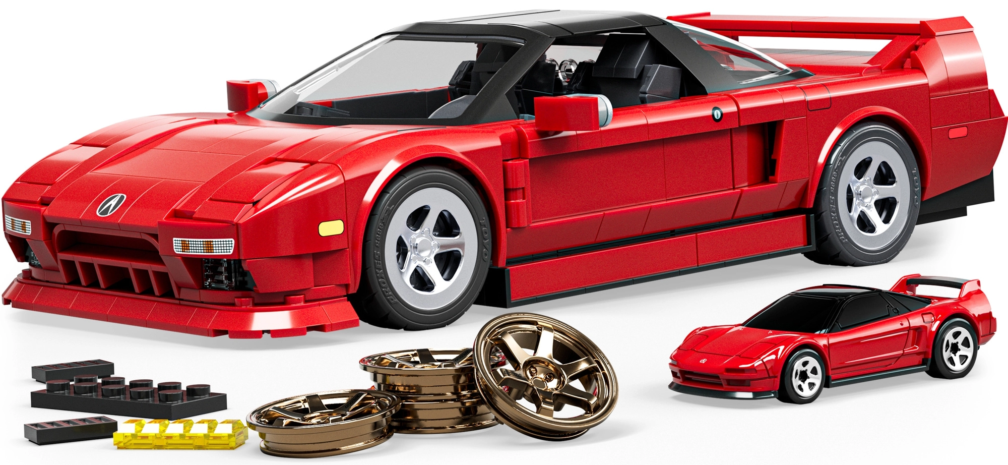 Ten szczegółowy zestaw ucieszy wszystkich fanów szybkich aut i kreatywnej zabawy. Wierny model ’90 ACURA NSX w czerwonym kolorze zaprojektowano z naciskiem na precyzyjne detale, zapewniając świetne wrażenia zarówno z budowania, jak i ekspozycji. Dzięki metalowym elementom możesz dalej personalizować auto – na przykład zmieniając felgi.