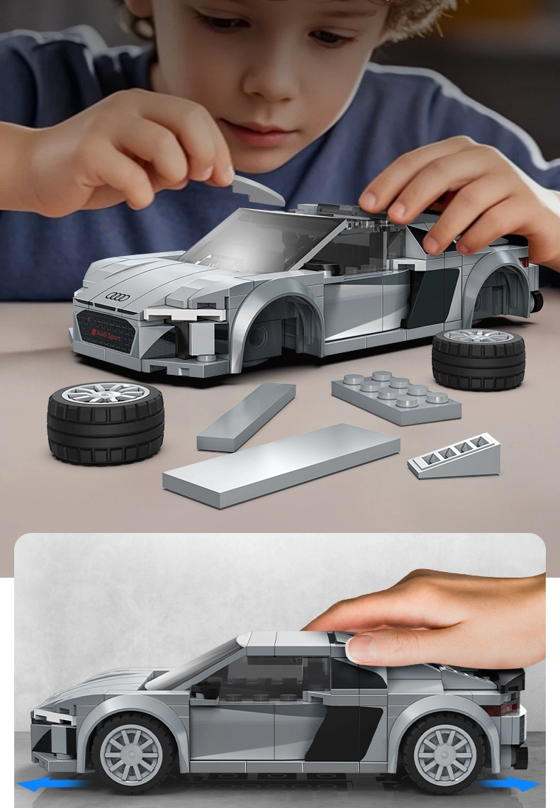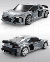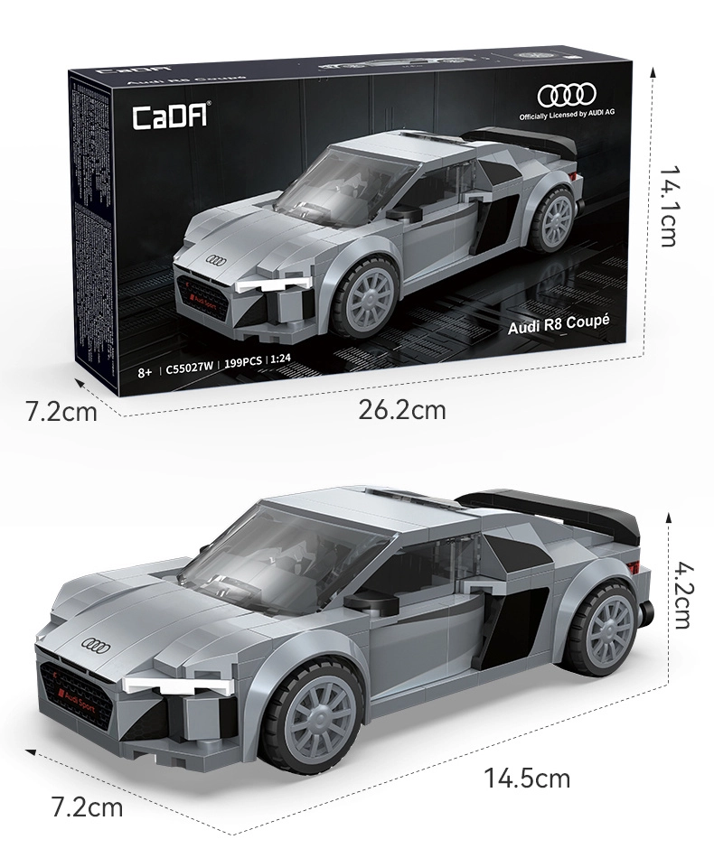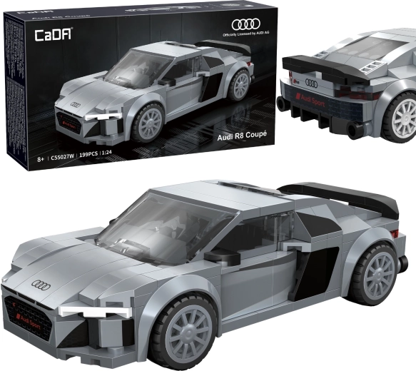 Ta licencjonowana konstrukcja CaDA wiernie odwzorowuje agresywne linie sportowego samochodu AUDI R8 Coupé (2019). Dzięki wysokiej jakości klockom i precyzyjnym nadrukom bez naklejek wyróżnia się realistyczny przód z czarną kratką, podwójnymi wlotami powietrza oraz czystymi bocznymi konturami. Po złożeniu model ma około 14,5 × 7,2 × 4,2 cm i świetnie prezentuje się na półce lub biurku.