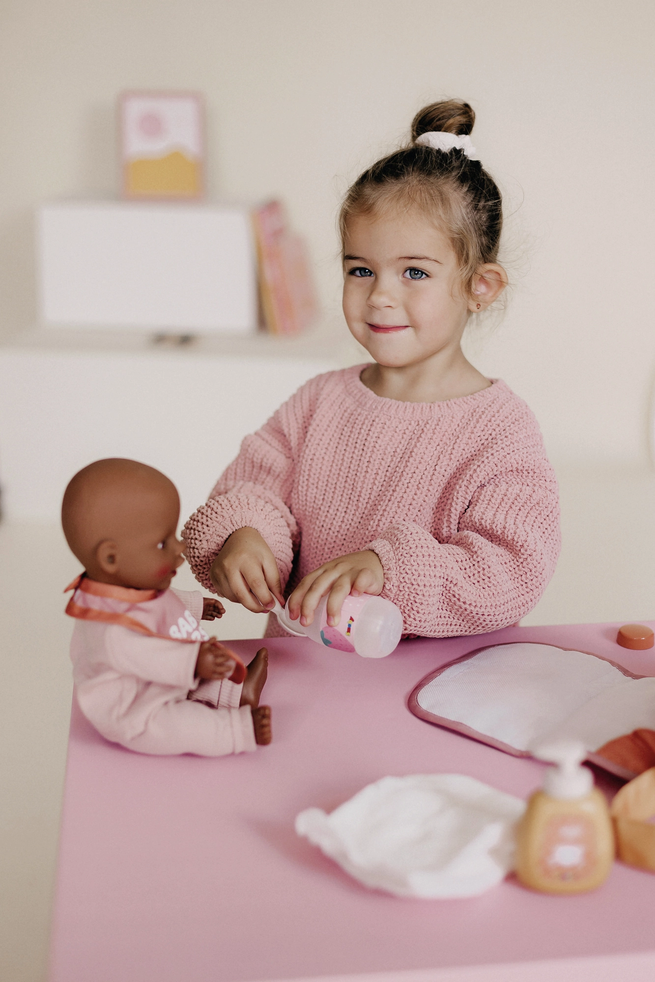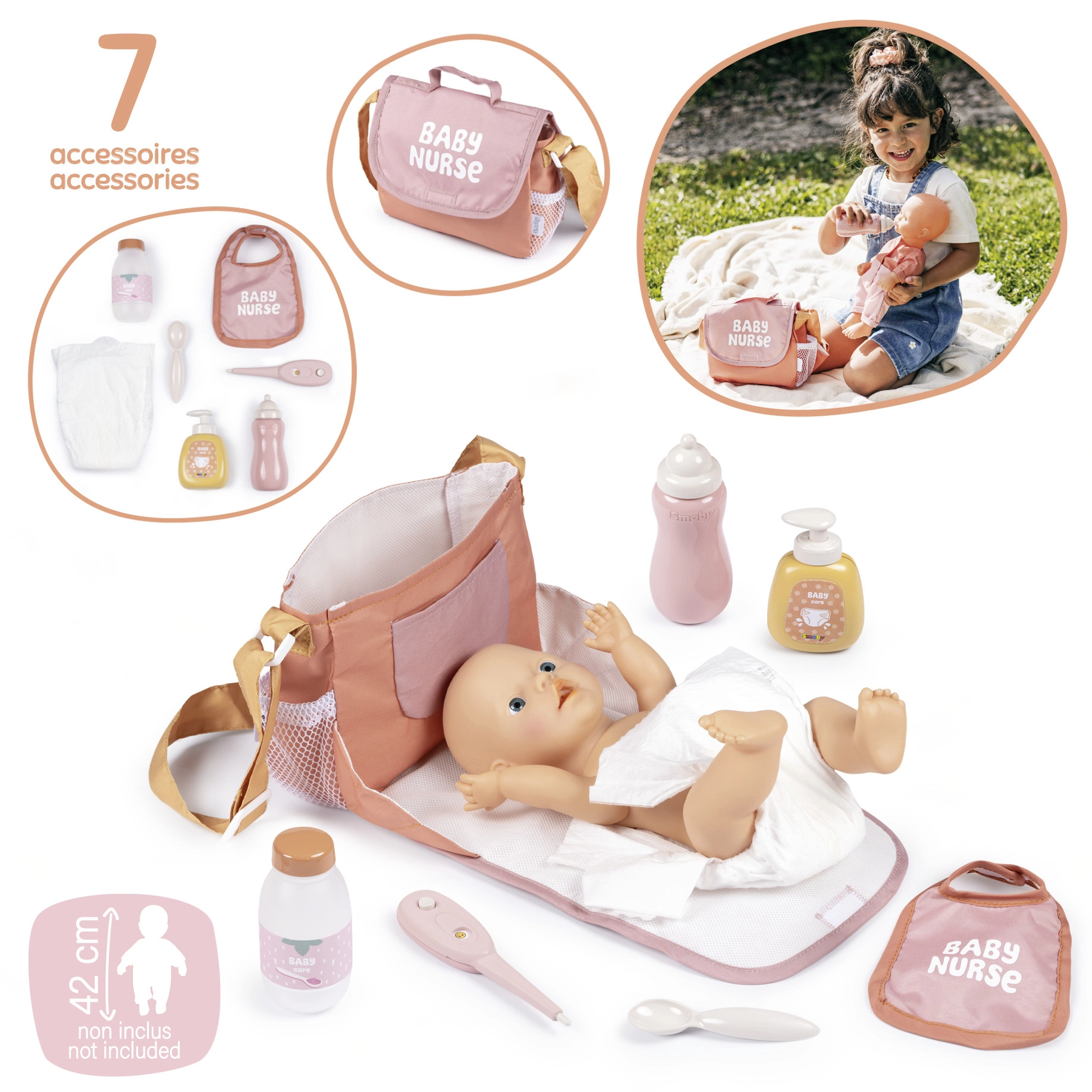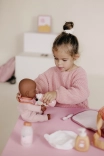 W zestawie znajduje się wszystko do codziennej zabawy i naśladowania prawdziwej opieki: butelka na mleko, termometr, syrop z łyżeczką, dozownik na szampon, śliniaczek oraz pieluszka dla lalki. Zestaw rozwija kreatywność, małą motorykę i uczy odpowiedzialności oraz troskliwej opieki.