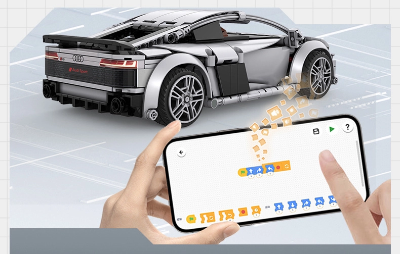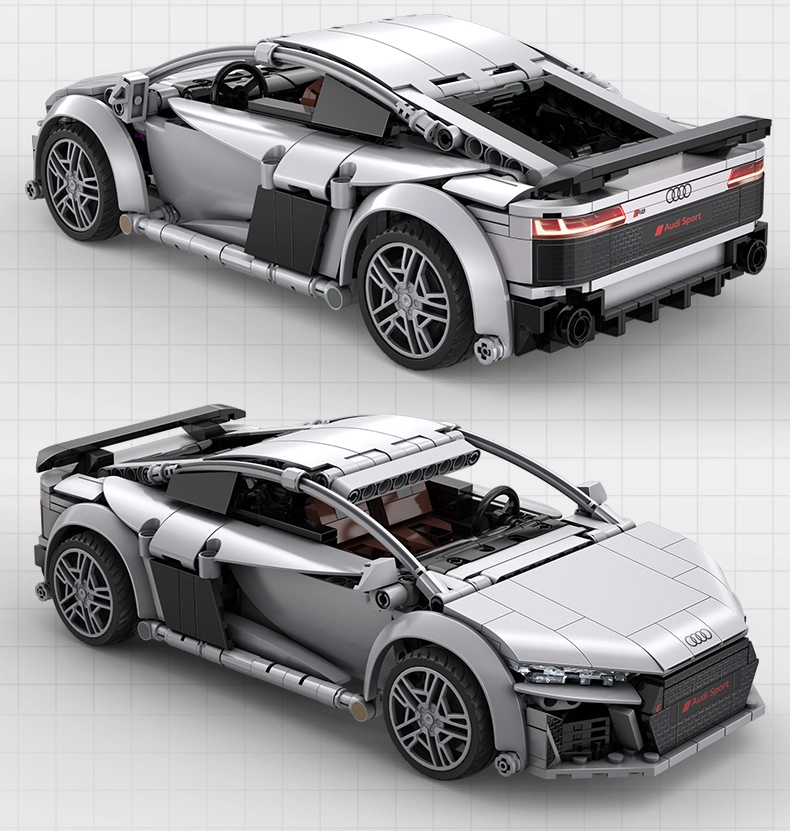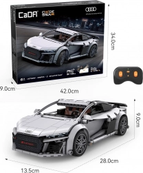 RC zestaw konstrukcyjny CaDA AUDI R8 Coupé łączy radość tworzenia z nowoczesną technologią. Po złożeniu powstaje dopracowany model o wymiarach 28 × 13,5 × 9 cm, który wiernie odwzorowuje linie oryginału w eleganckim szarym kolorze. Dzięki oficjalnej licencji cieszysz się autentycznymi kształtami karoserii, nadrukami zamiast naklejek i szczegółowym wnętrzem.