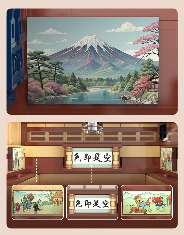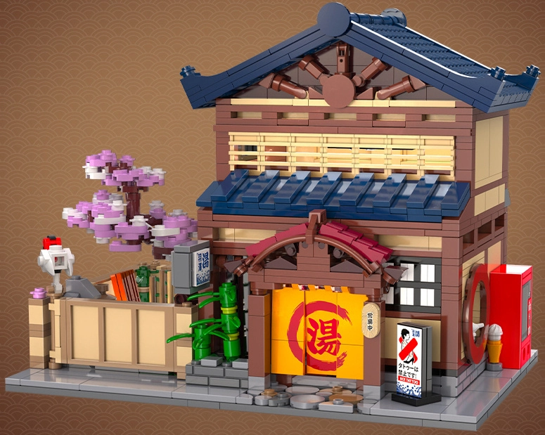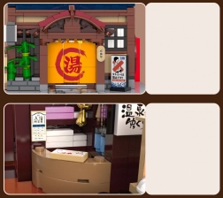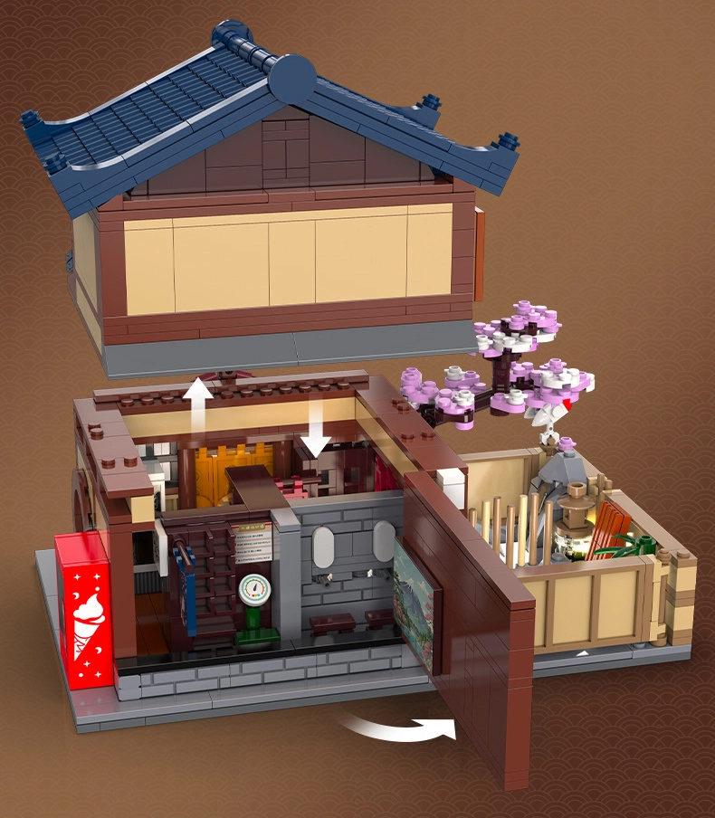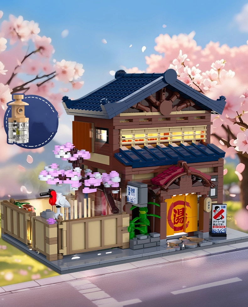 Ten szczegółowy model tradycyjnej japońskiej łaźni Sento przenosi autentyczną atmosferę Dalekiego Wschodu prosto do Twojej kolekcji. Zewnętrzna fasada zachwyca detalami architektonicznymi, takimi jak szczyt dachu, kwiaty sakury i charakterystyczne elementy japońskiego stylu. Dzięki otwieranym ścianom łatwo zajrzysz do środka i docenisz realistycznie wyposażone pomieszczenia.