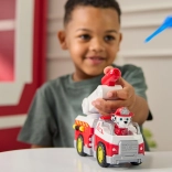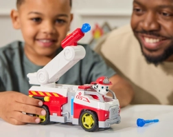 Poznaj ulubionego dalmatyńczyka Marshalla i jego świetny wóz strażacki inspirowany serialem PAW Patrol. Dzieci mogą posadzić figurkę w kabinie i ruszyć do akcji, podnieść drabinę oraz wystrzelić niebieskie „wodne” pociski w kierunku wyimaginowanych płomieni. Ta zabawka wspiera wyobraźnię, małą motorykę i tematyczną zabawę w ratowników.