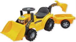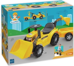 Ten solidny traktor z przyczepą daje dzieciom wiele możliwości zabawy i rozwoju motoryki. Łyżkę spychacza można łatwo wymienić na łyżkę koparki, dzięki czemu mali budowniczowie mogą załadowywać, rozładowywać i przewozić zabawki w zależności od nastroju. Dzięki wygodnemu siedzisku ze schowkiem drobiazgi są zawsze pod ręką.