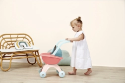 Wózek zaprojektowano dla lalek do 32 cm, ma ergonomiczny uchwyt dopasowany do małych dłoni oraz solidne plastikowe wykonanie zapewniające długą żywotność. Idealny do rozwoju empatii, opiekuńczości i wyobraźni u dzieci od 18 miesięcy.