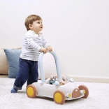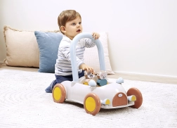 Szerokie koła, wygodny uchwyt i solidna konstrukcja pomagają dzieciom bezpiecznie ćwiczyć równowagę i pewność podczas chodzenia w domu i na dywanie.