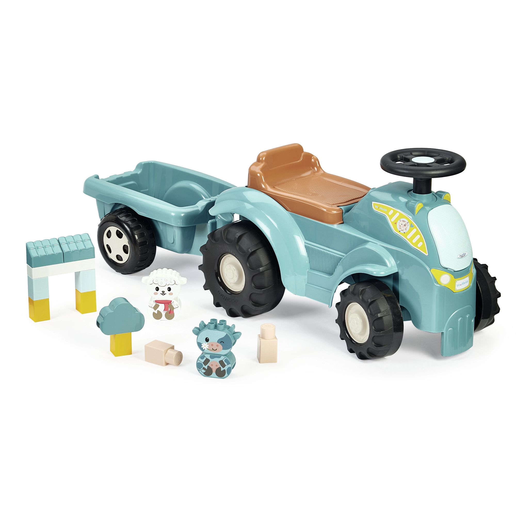 - Dziecięcy jeździk – traktor z przyczepą i klockami