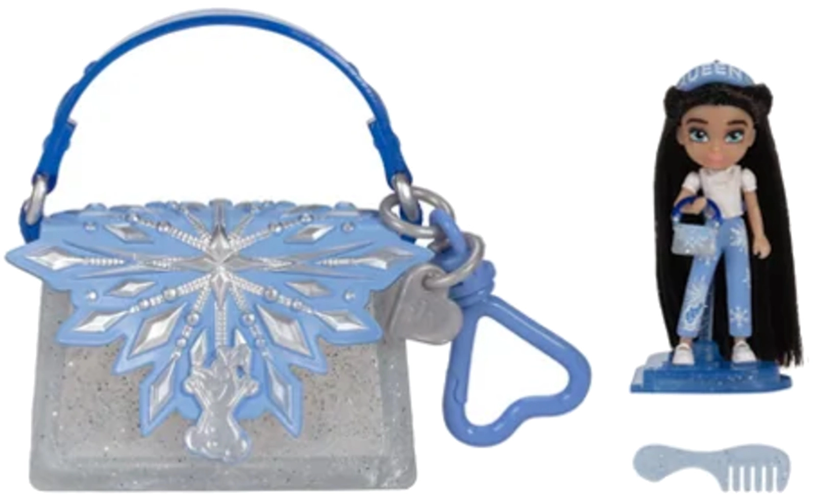 Ta modna mini laleczka z kolekcji Disney ILY 4Ever Tote Teenies łączy świat mody i fantazji. Ma długie ciemne włosy, jest ubrana w niebiesko-biały strój z motywem płatków śniegu, a całość uzupełniają sportowe buciki i mini torebka ze śnieżynką. Idealna dla małych miłośników świata Disney i kolekcjonerów.