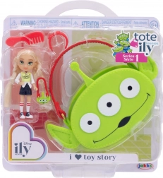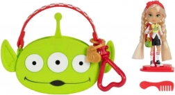 Mini laleczka z długimi blond włosami ubrana jest w modny zestaw z motywem kosmity z TOY STORY. Strój uzupełniają sportowe buciki oraz mini torebka w kształcie głowy kosmity. W zestawie znajduje się także duża różowa przenośna torba z motywem kosmity, do której łatwo schowasz laleczkę i jej drobiazgi – idealna do zabawy w domu i w podróży.