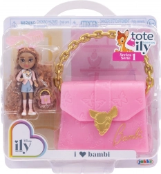 W komplecie znajduje się także większa różowa torba z motywem Bambi, do której mieści się lalka i wszystkie drobiazgi – dzięki wygodnej rączce dzieci łatwo zabiorą ją wszędzie. Nie brakuje stylowych akcesoriów do dopracowania wyglądu i ekspozycji na półce.