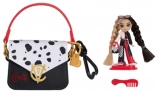 Cały zestaw łatwo zabrać w podróż dzięki większej różowej torbie w motywie Cruelli, która pomieści laleczkę i drobne akcesoria. Dzieci będą się bawić w czesanie dwukolorowych włosów grzebieniem, stylizację z okularami oraz ekspozycję na stojaku.