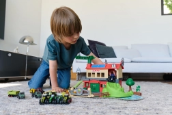 Buduj i baw się na dwóch poziomach: pojazdy przechowuj na dole, zwierzęta i siano na górze. RAMPY i bramy zwiększają możliwości zabawy i pobudzają wyobraźnię.
