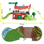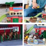 - 2 traktory (1:64), przyczepa, 10 figurek zwierząt, dwupoziomowa stodoła z rampami, dźwig z bloczkiem, zagrody i akcesoria