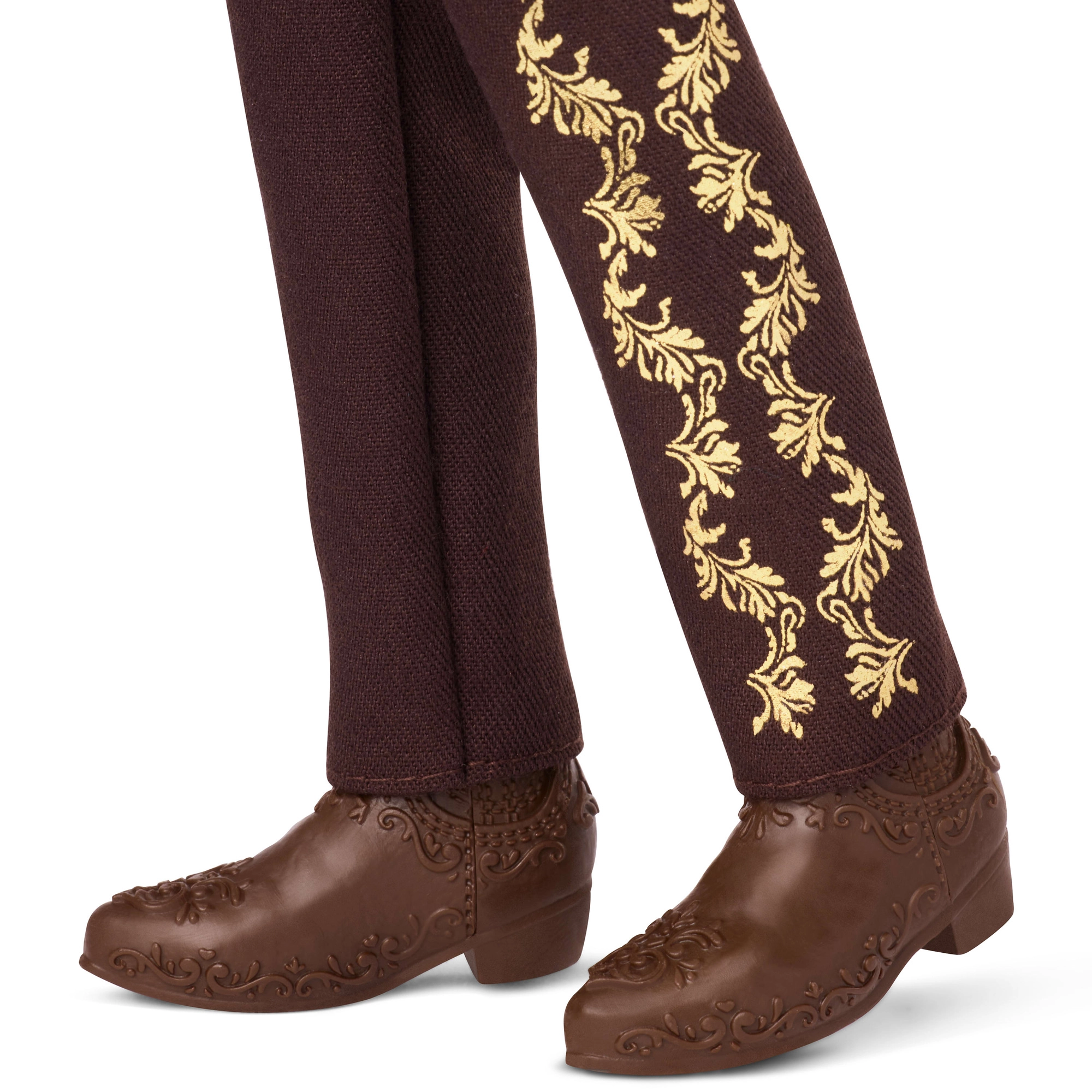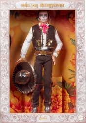 Ta wyjątkowa kolekcjonerska lalka oddaje autentyczną atmosferę meksykańskich obchodów Día de Muertos. Ken ma zdobioną twarz w stylu calavera, białą koszulę z kwiatowym haftem, brązową kamizelkę i spodnie ze złotymi ornamentami, pasek oraz szerokie sombrero. Dzięki starannemu wykonaniu wygląda jak prawdziwy mariachi.