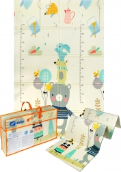Odkryj uniwersalną matę, która rośnie wraz z Twoim dzieckiem od pierwszych dni życia. Dzięki grubości 1 cm świetnie izoluje od chłodu i amortyzuje upadki, dlatego jest idealna do bezpiecznej zabawy, raczkowania i stawiania pierwszych kroków. Dwustronny design oferuje z jednej strony urocze pandy, a z drugiej zwierzątka z liczbami i miarką wzrostu, co wspiera wczesny rozwój i naukę.