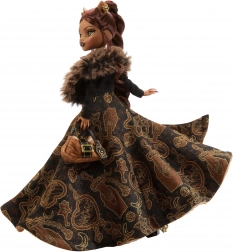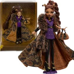 Każdy element stroju jest dopracowany w najmniejszym szczególe: formowalny płaszcz, sukienka ze złotymi detalami, buty z efektem rajstop oraz wyrazista torebka. W zestawie znajduje się także podstawka, która ułatwia prezentację. Doskonały wybór dla miłośników mody, kolekcjonerów i fanów mrocznie eleganckiej estetyki Monster High.