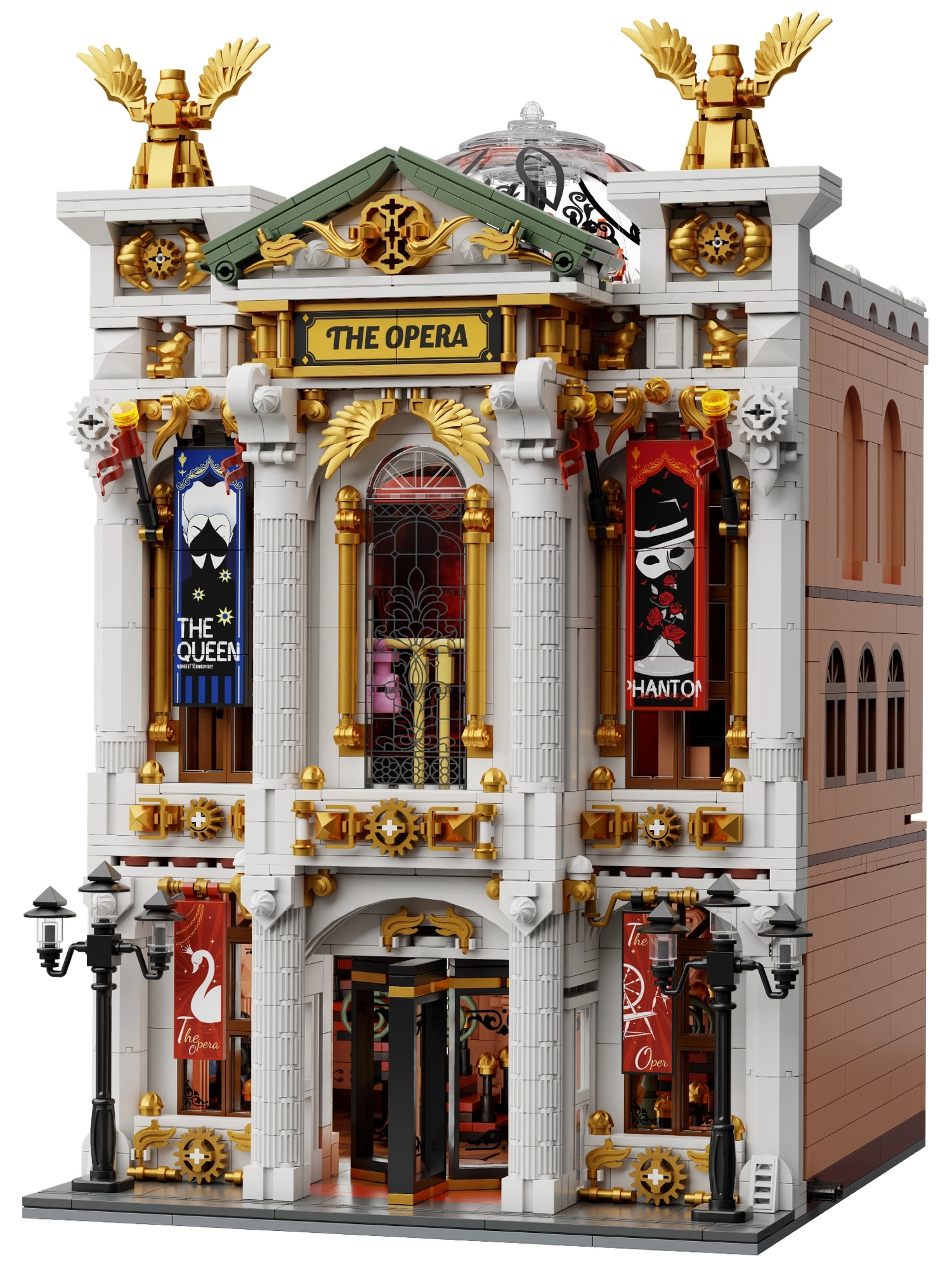 Ten kolekcjonerski zestaw przenosi atmosferę wielkiej opery prosto na Twój stół. Fasada ze złoconymi detalami, kolumnami, banerami i latarniami ulicznymi zachwyca od pierwszego spojrzenia, a wnętrze i strefa wejściowa zachęcają do inscenizowania własnych opowieści.