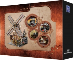 Wiatrak ożywa dzięki działającym łopatom i kołom zębatym. Mechaniczne detale wspierają interaktywną zabawę i efektowne eksponowanie modelu.