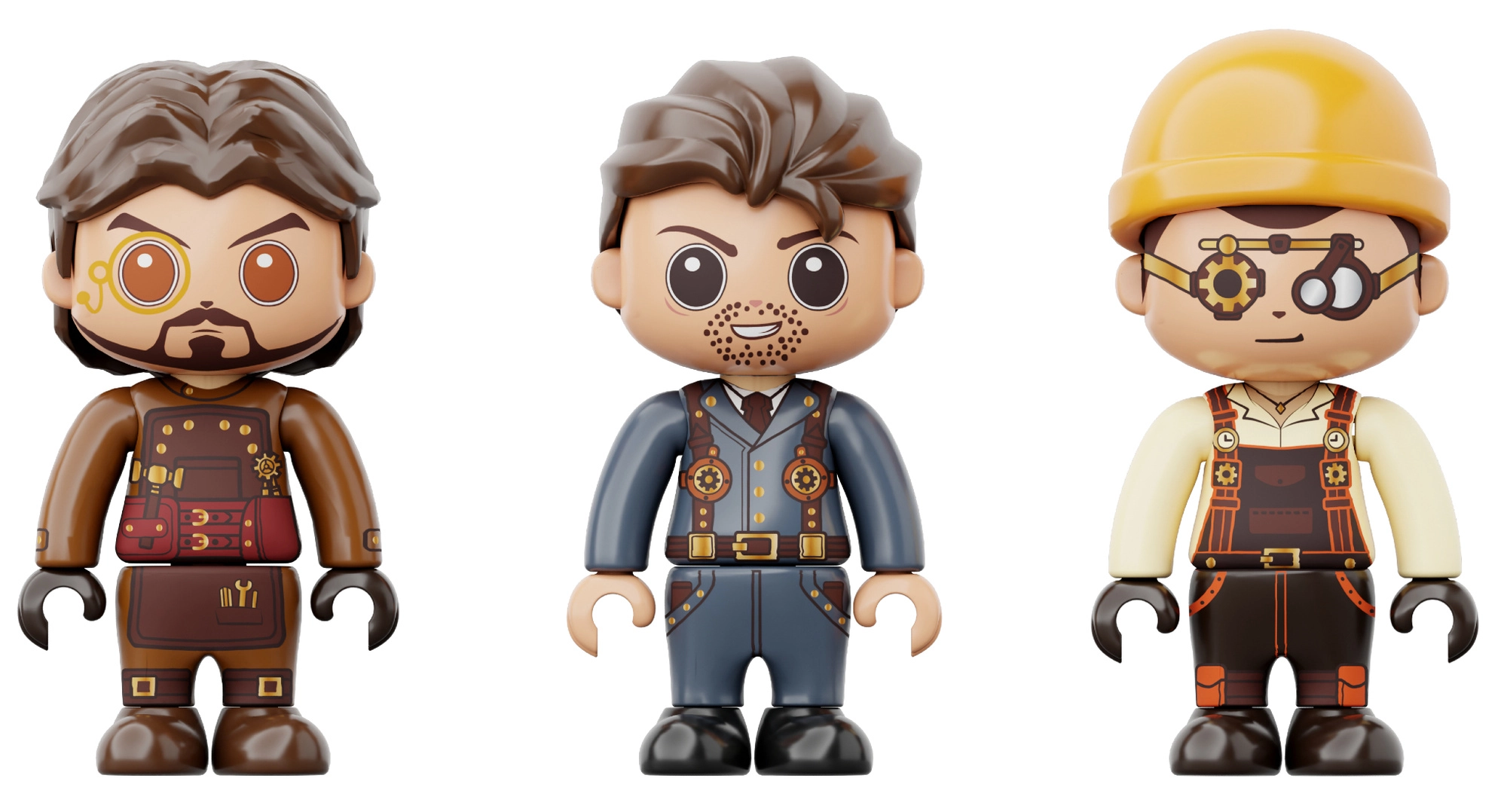 Zestaw zawiera stylizowane minifigurki wynalazcy, kowala oraz tajemniczego gościa – idealne do wymyślania własnych przygód.