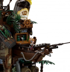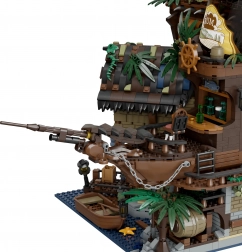 W zestawie znajdują się figurki piratów i gości, akcesoria, armata oraz mała łódź wiosłowa. Model oferuje wiele możliwości ekspozycji i zabawy.